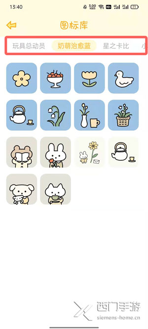 4、图标库:图标库中拥有了很多的软件,可左右切换选择图标,点击直接应用;