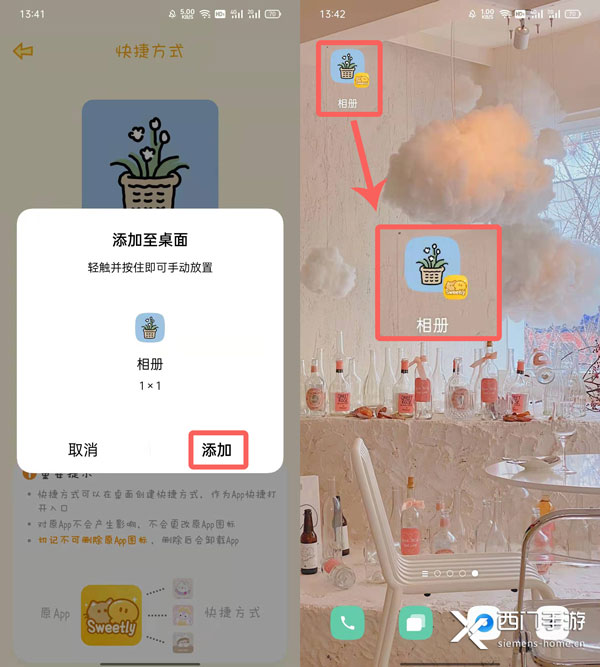 8、最后点击【添加】将其添加到你的桌面上即可,由于使用设备不同,图标显示的效果也不同,如oppo手机换图标后会显示下图样式。