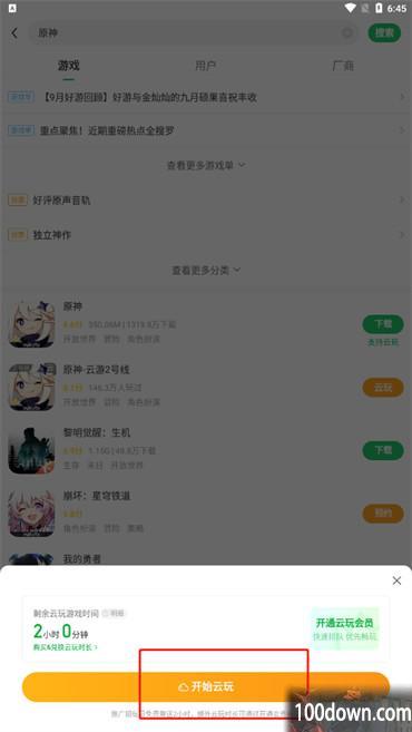 4.最后在页面下面弹出的对话框种点击【开始玩】即可云玩原神;