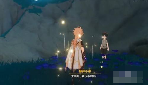2.然后在山壁旁边找到鲸井小弟,和他对话触发任务,需要30秒内找到手鞠;