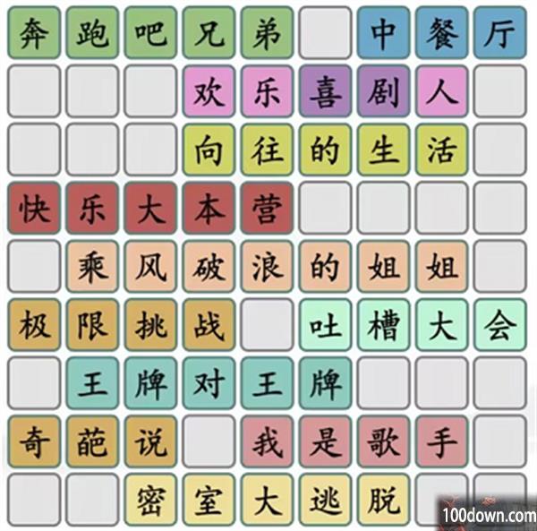 本关难度很低,玩家只要了解近年的热门综艺的名字,然后正确拼出即可。