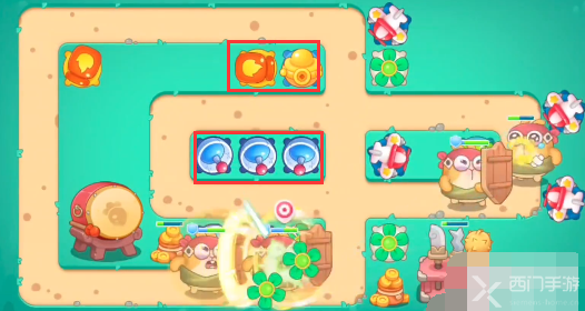 2、这一关可以多使用炮塔,玩家在中间的位置都放上炮塔,中后期激活攻击大门即可。
