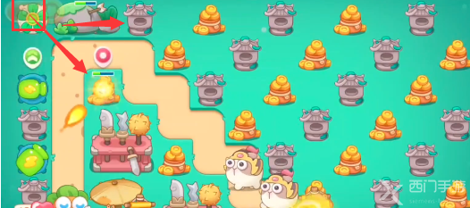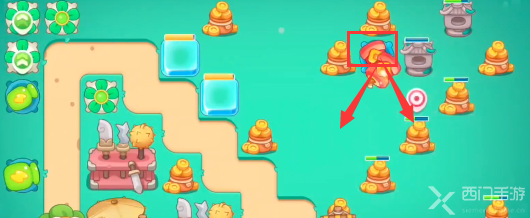 2、在右侧的位置可以放置随机炮塔,用来清理右侧的的道具,右侧道具清理完之后可以把道具卖掉。