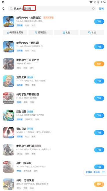 2.最后在搜索框中输入你要下载的有游戏,在输入的时候加上【国际服】三个字即可;