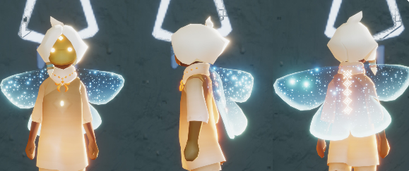 该斗篷的造型为蝴蝶的翅膀,颜色主要为浅蓝色,但却不完全以实体蓝色呈现,而且近乎透明化的材质呈现,翅膀上还有点点星光作为点缀,让人一眼望去宛如看到星空。