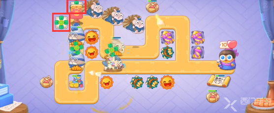 4、后期的话啊, 玩家可以在左侧位置多放一些风扇,起点处还可以放一些太阳花和泡泡塔。