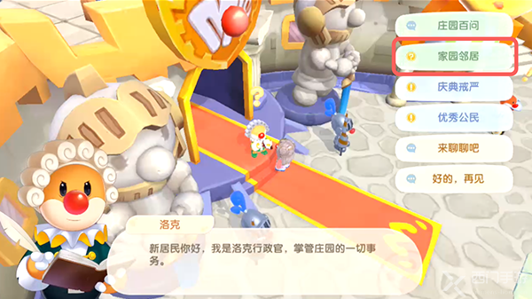 e.对话了解申请条件后,再次点击对话选择家园邻居,对话后选择【申请邻居】;
