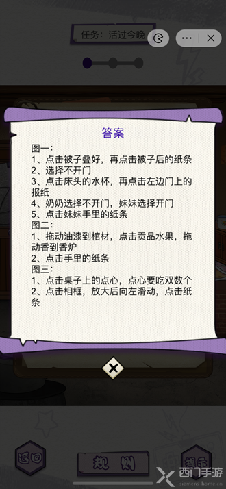 4、奶奶选择不开门,妹妹选择开门5、点击妹妹手里的纸条。
