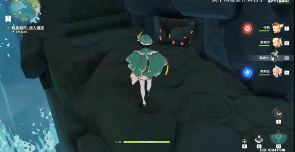 1、首先我们需要进入到游戏任务【慈盐之末】需要探索的洞穴中,在我们下降到水中后,上岸后使用元素视野探查一下就可以看到左上方有一个宝箱;