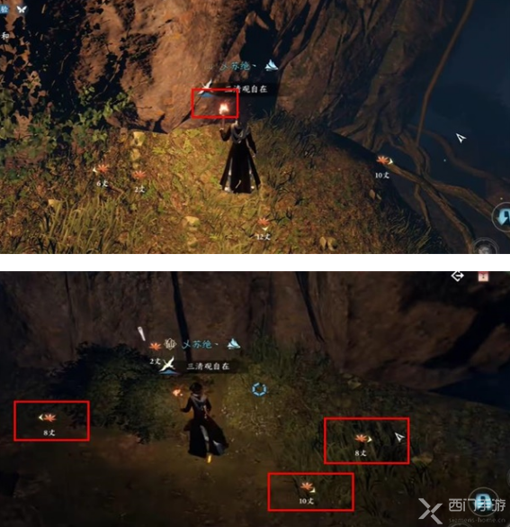 5、然后需要取下墙壁上的火把用来照,继续按照指引把周围的全部草丛点燃即可;