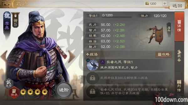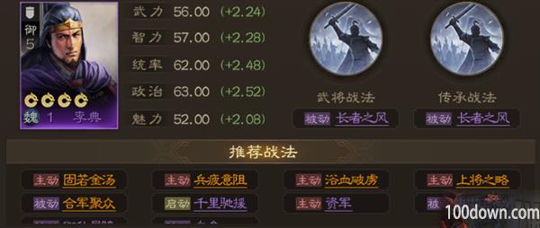 李典是游戏中的5御统值盾兵武将,拥有综合的自身属性,武力和智力、统率值都很不错,而且他的战法可以提高我军群体的武力和智力,可以作为辅助型武将培养,给队友增加武力和智力,让强势的武将得到最大的发挥。