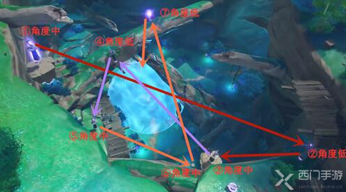 1.首先需要去解密,如下图:按照数字排列顺序在转动柱子,击中中间的水罩后就可以找到镇物;
