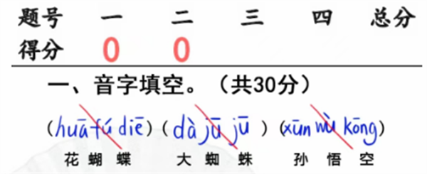 第一题:全部判错即可(hu die、zhizhu、sunwukong、报答、仍要、buqubunao)