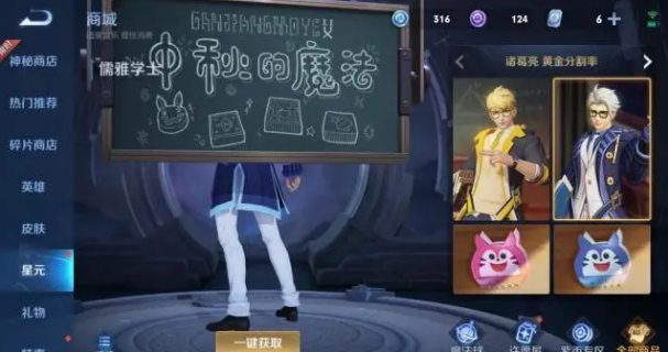 在诸葛亮的星元皮肤界面的小黑板上给出了线索: