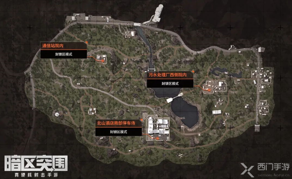 普通模式的北山地图没有空投罐,封锁区模式中则有三个,分别位于通信站院内、北山酒店南部停车场以及污水处理厂西侧院内。