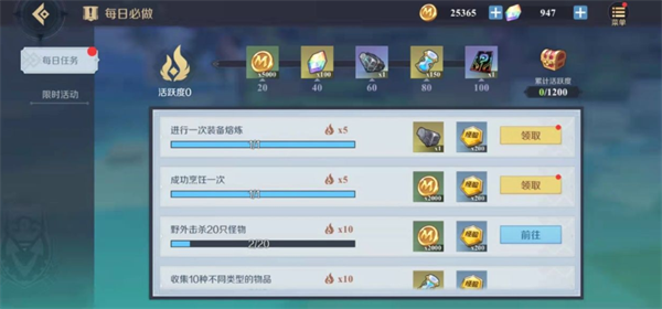 2、每日必做-这个是游戏里面玩家们的每日任务,这些做了玩家们可以获得大量的游戏经验就能够快速升级;