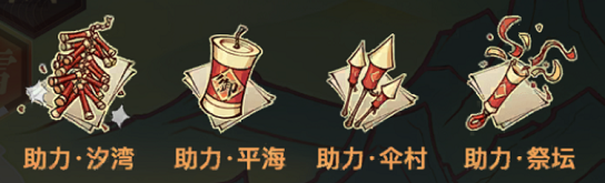 2.云垂各地人们制作的4种烟花爆竹,能给战斗助力。解锁后所有云垂冒险家都能获得效果。