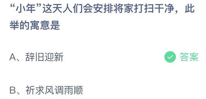 小年这天人们会安排将家打扫干净,此举的寓意是?这是近期一个比较热门的话题,很多玩家都比较关注这个方面的具体资料,通过下面的文章内容,就让我们一起来了解一下今日的蚂蚁庄园小课堂答案吧。
