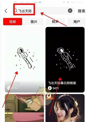 3、点击搜索【飞出天际】后,就可以看到下方有两款飞出天际的动态壁纸分别是白色和黑色;