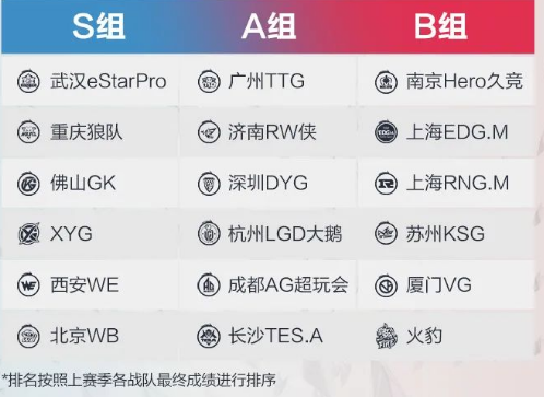 *排名按照上赛季各战队最终成绩进行排序。
