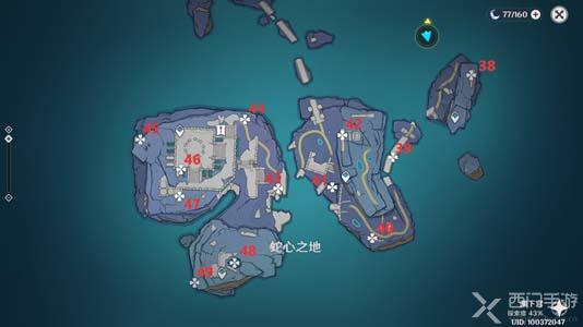 47、传送到西北角传送点跳下去,降落到最高的台地上,这里有个洞可以进入,在丘丘人旁边的柱子上就能看见键纹类型IV;