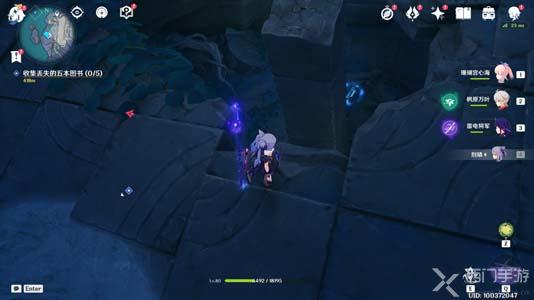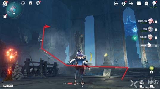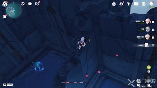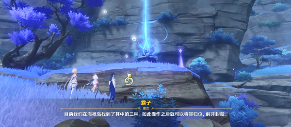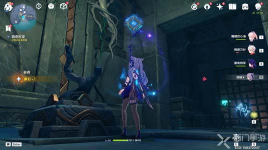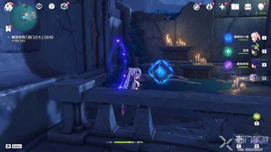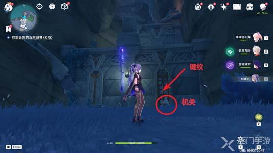 35、需要带水元素角色解密,将模式切换为夜晚模式(南方一块石头后面有转换装置),点亮三个水方碑,即可进入屏障找到键纹类型I;