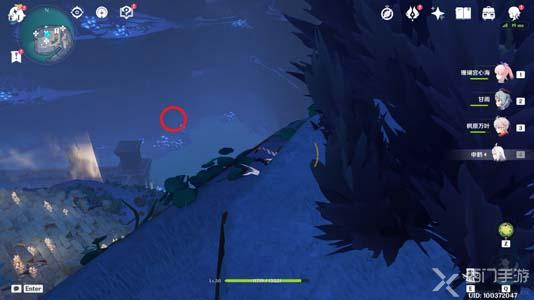 2、重新回到传送点的位置,往西边的位置前进,从标记的位置跳下去,就可以看到丘丘人围着一个键纹类型I;