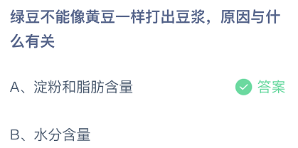 绿豆不能像黄豆一样打出豆浆,原因与什么有关?这是今日的蚂蚁庄园小课堂的问题,很多玩家都比较关注这个话题,接下来就让小编为大家详细介绍一下,希望可以帮助到大家。