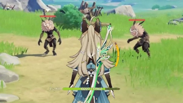 像猫穿过灌木丛一样敏捷地跳向空中,用飞踢攻击敌人,造成草元素伤害,同时创造安全运输护盾;