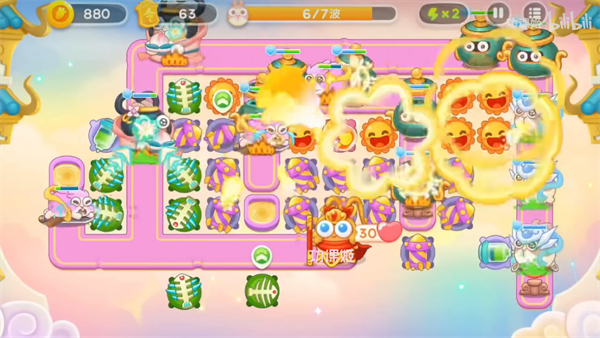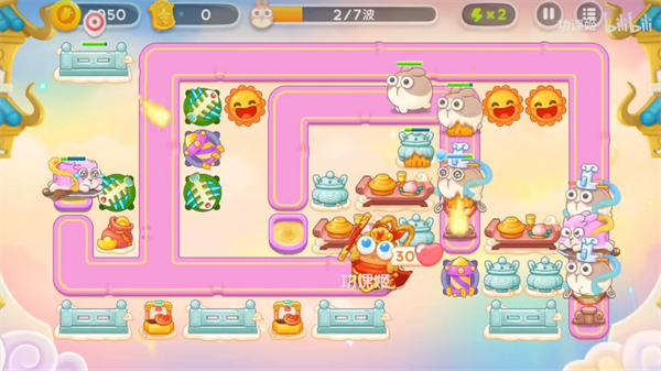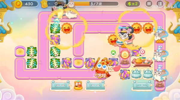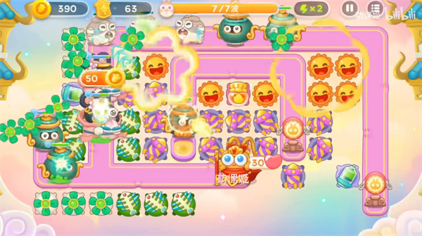 3、第二步开头右下角就会出现飞兔,时间点大概就是右上角的钱袋打掉的,那个时候大家要提前建上3级的烟花;