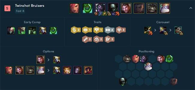 在极客的护盾加成下巨魔可以有不错的防御,而且前排还有2格斗家为阵容提供更多血量值,在蔚和巨魔两个角色的加成下就有不错的输出,而且成型很快。