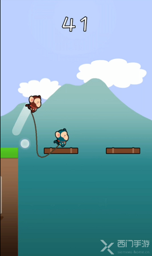 哥俩好事一款闯关的魔性小游戏,在其中玩家需要控制两个小猴子去进行闯关,两个小猴子是通过绳索连接在一起的,并且绳索只有这么长,不会让两只猴子隔的很远,所以我们的跳跃距离也就被限制住了,玩家需要通过手指的点击让猴子跳跃移动,长按屏幕就会跳跃很高很远,但是会被绳索束缚,造成连体的情况。