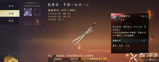 7、打造:我们可在武器、上衣、项链、鞋子4个部位进行打造,打造会消耗精炼矿石,矿石可在集市、交易行购买,也可以通过工匠身份制作,会随机在5种品质里刷新一种特技打在装备上,其中金色最佳,打造是勾选下方的添加天外陨铁可增加获得高品质特技的几率,并且保底为蓝色,天外陨铁同样可在集市与交易行购买,也可通过部分任务与分解装备获取;