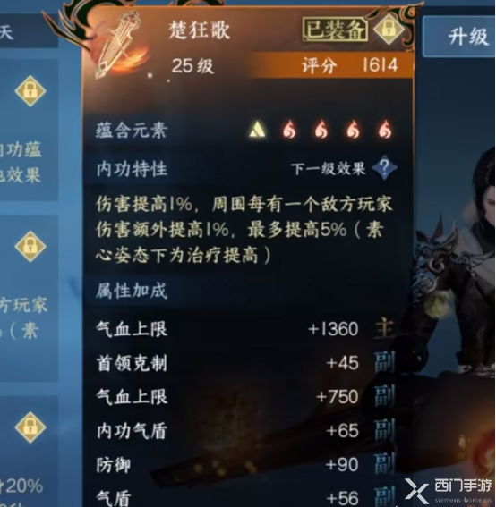 金色内功蕴含的元素是随着内功的等级来开放,1级金色内功增加的属性较低,随着升级增加的元素与词条不同,所增加的战力评分也不同;