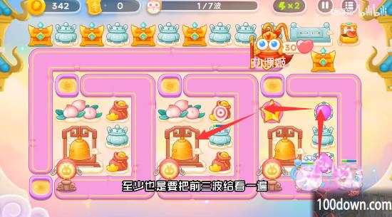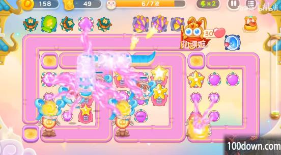 1、开局在右下角位置放魔法球,先清理上方到基于,清完放魔法球,继续把z7uoce桃子打了,桃子打了放星星塔,继续往左清理;