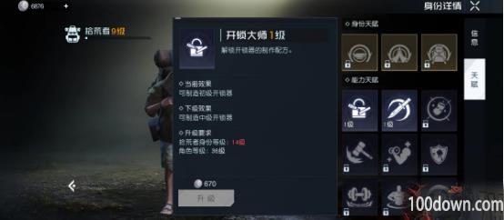 3、然后在拾荒者的天赋界面有一个技能是开锁大师,玩家使用670银币升级就可以了;