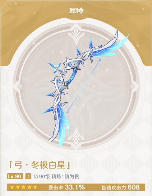 *「弓·冬极白星」为限定五星武器,不会进入「奔行世间」常驻祈愿。