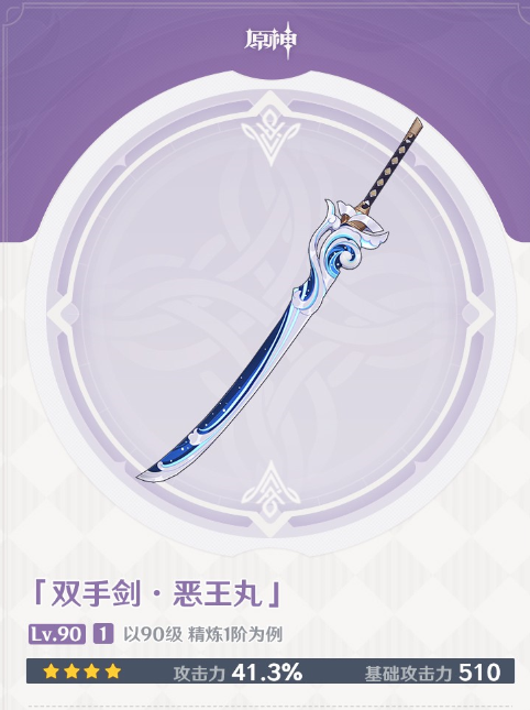 双手剑·恶王丸]为限定四星武器,不会进入「奔行世间」常驻祈愿。
