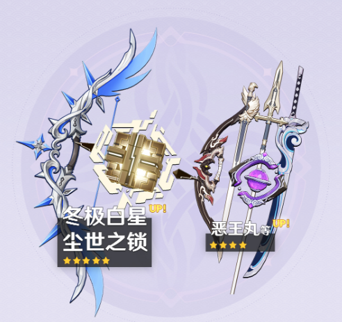活动期间,限定五星武器「弓·冬极白星」「法器·尘世之锁」、限定四星武器「双手剑·恶王丸」、四星武器「单手剑·西风剑」、「长柄武器 ·西风长枪」、「法器·昭心」、「弓·弓藏」 的祈愿获取概率将大幅提升。
