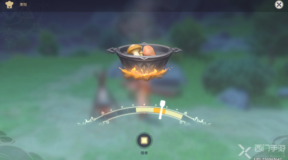 在指针转动至淡黄色条时点[结束]按钮,可获得“野菇鸡肉串”;