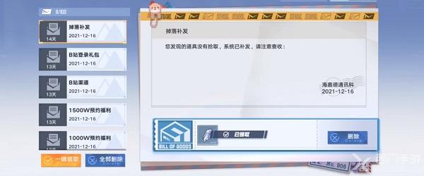 4、在启程补给界面可以看到所有的预约奖励,点击后面的“取件”选项即可领取,需要玩家注意的是每个游戏账号只能领取一次;