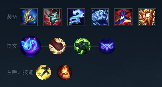 该出装保证了不会缺蓝的同时回复量也拉满,2技能的回复团战很关键,3技能的加速也要多配合使用,香炉效果可以瞬间给到4个队友。