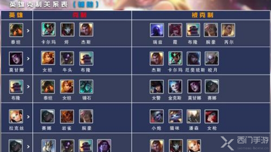 英雄联盟电竞经理英雄克制和被克制关系一览