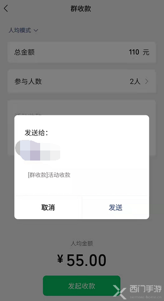 6、填写好之后,点击下方的【发起收款】,然后就可以发送给选中的好友或群聊了。