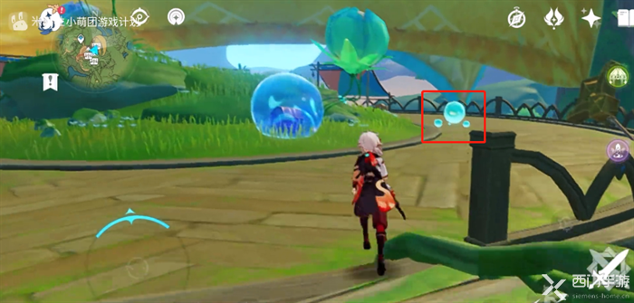 1、首先根水泡宝箱右侧的水泡泡交谈,靠近后选择“观察”,然后跟着水泡泡走一圈,观察四个水泡泡变身;
