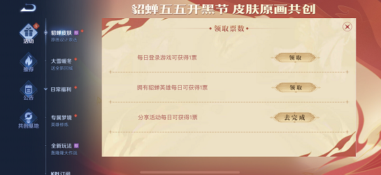 王者荣耀貂蝉五五开黑节皮肤怎么投票-貂蝉五五开黑节皮肤投票获取方法