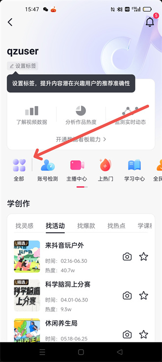 4、在【全部】这个新页面里有【抖音小店】,进入之后即可开通橱窗。
