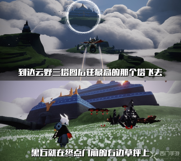 玩家到达云野的三塔图之后,然后往前飞,到那个最高的塔那里,玩家到达那个塔的门前之后,在右边的草坪上是可以看到有黑石的。