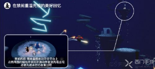 这个重温先祖的位置是在禁阁四层,雨林星图右边浮空平台上,玩家找到先祖之后需摆出祈祷动作直到中间石碑完全变白,然后重温收集过程。