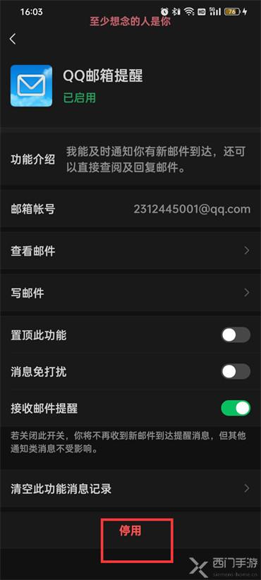 6.最后在QQ邮箱提醒的页面点击【停用】即可;